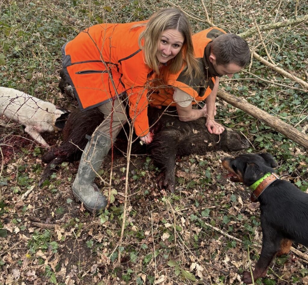 FG : Selon les territoires, l’accueil n’est pas toujours le même. Aujourd’hui, j’arrive à la fin de ma quatorzième saison de chasse. Il existe encore des endroits où je ne peux pas me rendre seule sans être accompagnée d’un membre de ma famille ou d’un ami proche, car certains hommes peuvent être lourds, très lourds. À l’inverse, sur d’autres territoires, j’ai été adoptée sans aucune difficulté, avec respect et bienveillance. Être une femme à la chasse s’accompagne encore de nombreux préjugés. Pourtant, je ne compte plus les sangliers que j’ai prélevés. Et malgré cela, il m’arrive encore d’entendre devant un tableau de chasse : « Ah mais c’est toi qui l’as tué ? Tu as réussi ? ». C’est une question qu’on n’entend jamais entre hommes. Mais parce que je suis une femme, on me la pose.