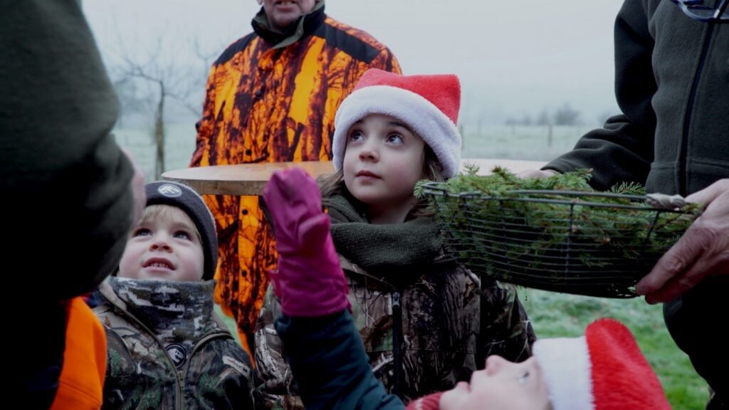 Lors de la remise des brisées, les enfants se tiennent également aux côtés de mon père. La chasse repose sur le respect : respect des consignes de sécurité, des autres usagers de la nature, des règles de tir, de l’animal prélevé. Nous leur inculquons cette exigence. Elle irrigue toute la journée.