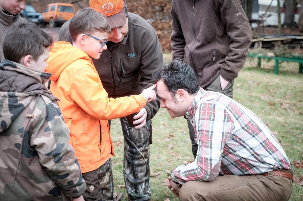 JG : Oui. Il y a plusieurs années, un ami de mon père m’a intronisé chef traqueur. Il m’a remis une peau de mouton, symbole de cette fonction. Ce geste m’a profondément marqué. L’an dernier, j’ai transmis cette même peau à mon filleul, Yanael, âgé de dix ans. Il venait de servir son premier sanglier à la dague lors d’un ferme. Ce moment, chargé d’émotion, a cristallisé la continuité de notre engagement.