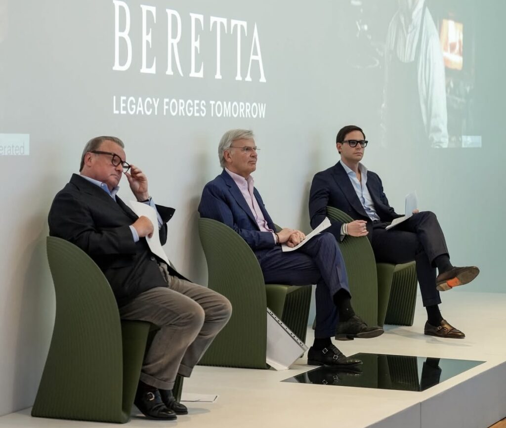 La conférence de presse organisée pour cet anniversaire n’avait rien de classique. Dès l’ouverture, le ton est donné avec une mise en scène forte : une prise de parole “reconstituée” du fondateur Bartolomeo Beretta, comme pour rappeler que tout part de là. Puis les représentants actuels prennent le relais. Autour de la table, trois générations : Pietro Gussalli Beretta, Franco Gussalli Beretta et Carlo Gussalli Beretta. Trois regards, une seule ligne directrice. Très vite, une idée s’impose dans la salle : Beretta ne célèbre pas seulement son passé. L’entreprise utilise cet anniversaire comme un point d’appui pour parler d’avenir.