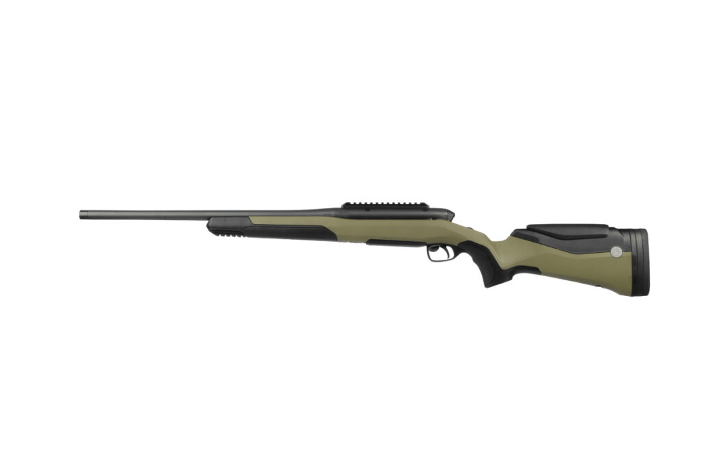 La RMS Wild reprend l’esprit de la MS Wild avec une crosse polymère conçue pour l’usage intensif. Elle est disponible en teintes vertes ou sable, avec une esthétique très outdoor. Le choix n’est pas seulement visuel : ce type de crosse permet de résister aux intempéries, aux chocs et aux conditions parfois rudes des battues, approches ou affûts prolongés. La longueur de crosse est ajustable grâce à des intercalaires. La longueur minimale annoncée est de 35 cm, avec possibilité d’ajouter des inserts selon la morphologie du tireur. C’est un point important pour une arme qui peut être utilisée par des chasseurs de gabarits différents, ou selon les vêtements portés en hiver.